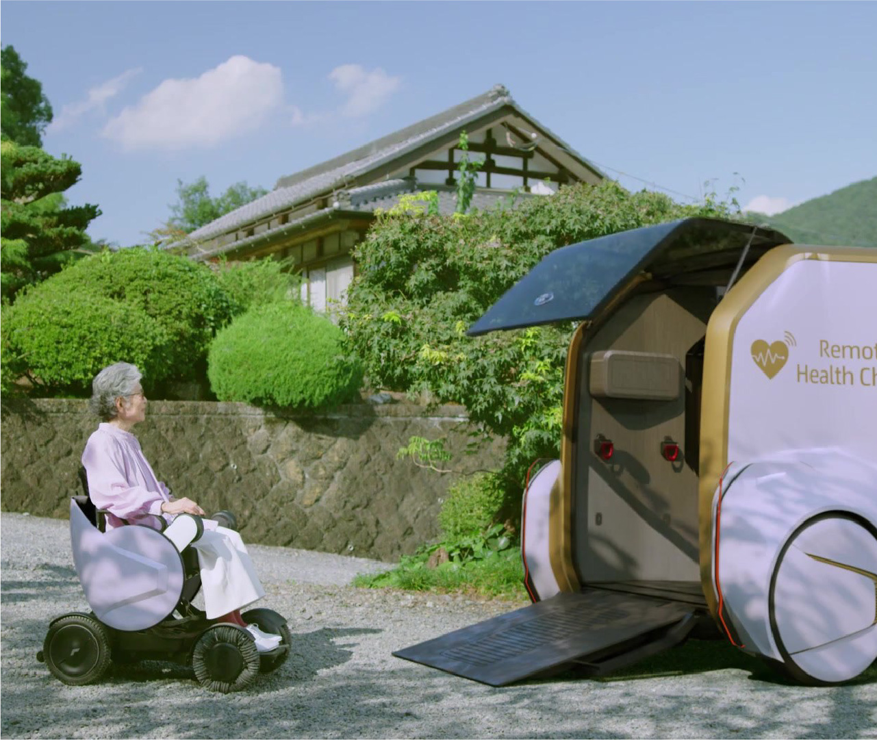 טויוטה E-Care מאפשר חופש ניידות, באמצעות בדיקות וירטואליות וייעוץ רפואי עבור אנשים בעלי יכולת תנועה מוגבלת, תוך גישה למקומות שהכי נוחים להם.